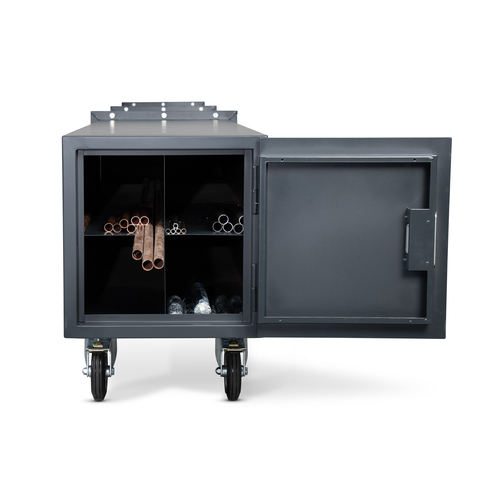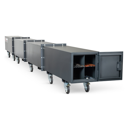 Perfect for sites, with castors that make the unit easily mobile and a 5-lever deadlock operation that keeps the unit secure.Constructed from steel with bolt-together sections, you can rely on PS6 to keep its contents secure. Opt for a padlock to secure sections together, or extend the unit to facilitate even longer lengths of material if needed.PS6 is not only secure but is designed to maximise space in the 4 compartments within the unit, keeping different materials separate and organised.